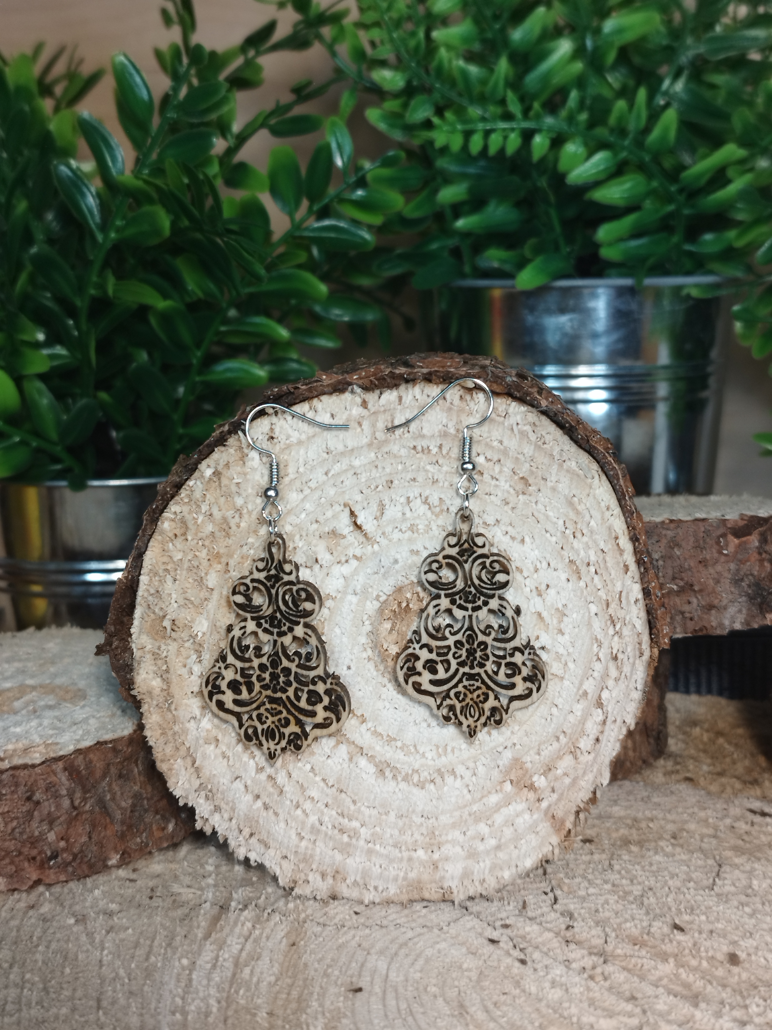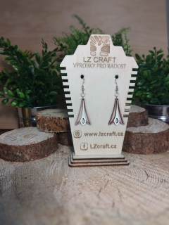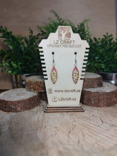 Náušnice jsou vyrobeny z kvalitní překližky a ručně malované akrylovými barvami. Každý pár je originál a může se lišit v detailech. Náušnice jsou poté ošetřeny bezpečným lakem, který dodává barvám hloubku a chrání dřevo před vnějšími vlivy.